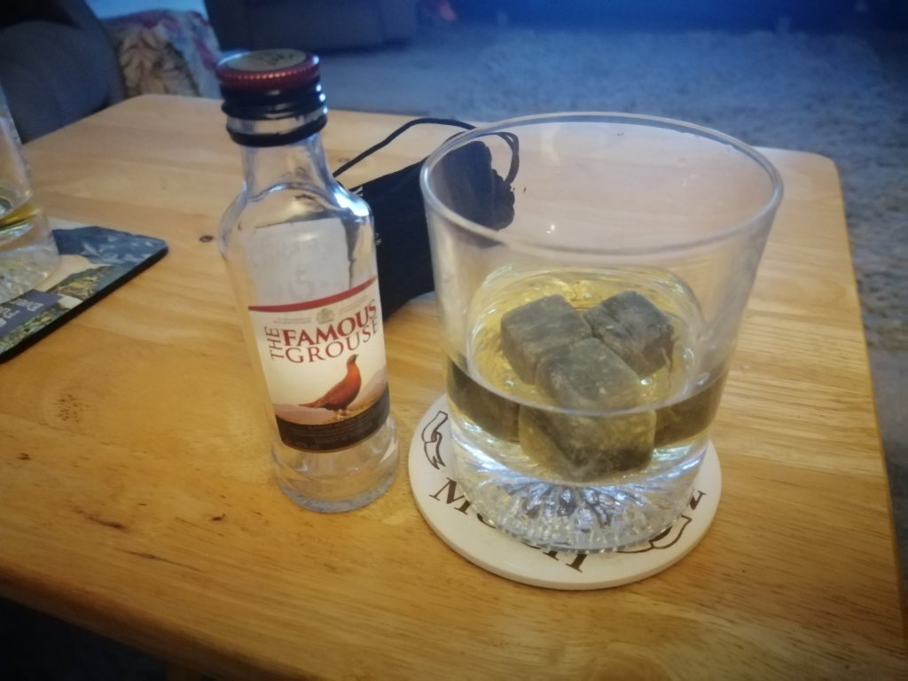 Starting with a Famous Grouse. Same amount of chilled water as whiskey plus some rocks from the freezer.
