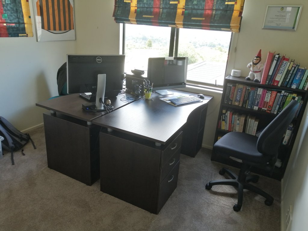 Covid 19 has highlighted the importance of a comfortable home office, and this weekend we swapped out the mahoosive corner desk with a desk each so we can both work at the same time.