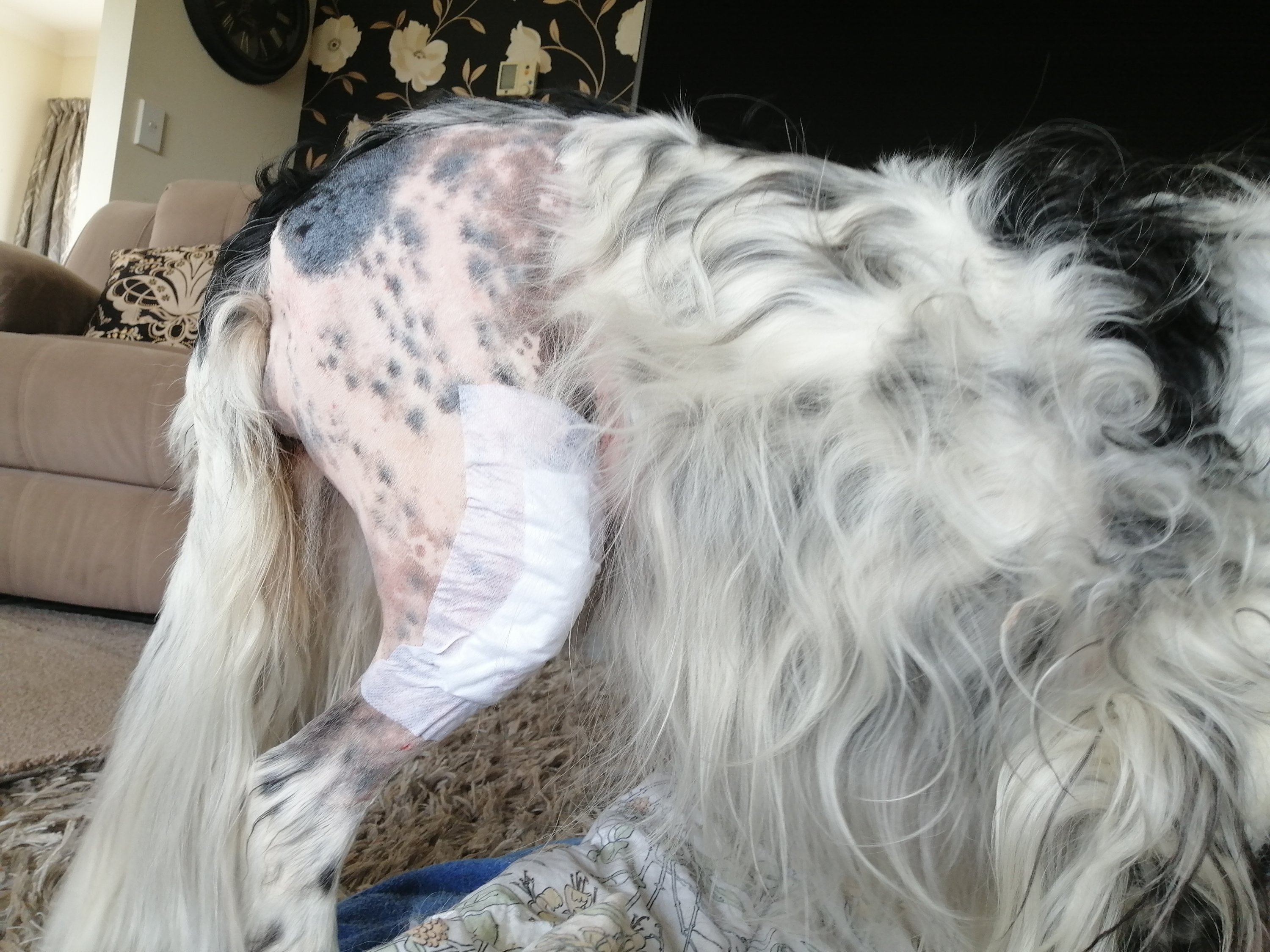 Penny is back home after a traumatic day at the vets, having her knee operated on to put back a dislocated miniscus and replace her ACL tendon with a stronger plastic tie.