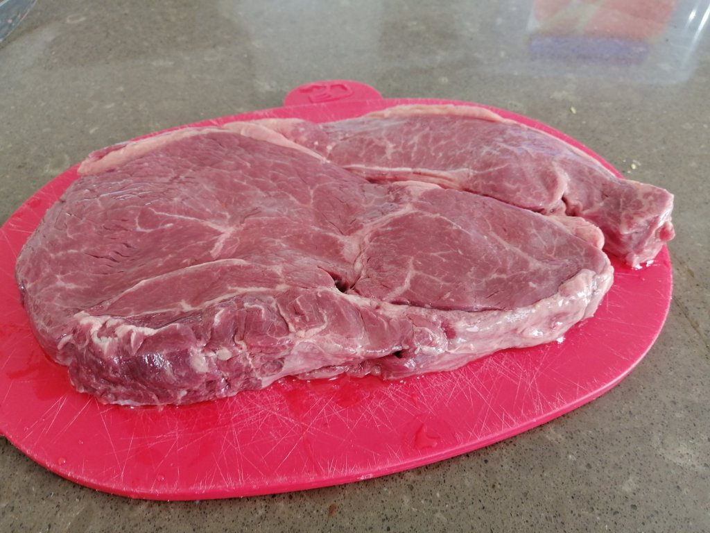 Got this bad boy for $12 from the local butcher. About to cook her up with some chups and peas and a big glass of Pinot Noir. Living the life! #meat_sweats