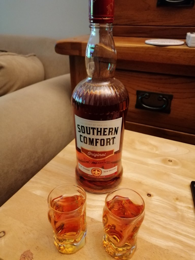 The Southern Comfort however is smooth and has a nice sort-of-orangey taste and aftertaste. No need for ice or water, just dangerously easy to go for seconds!