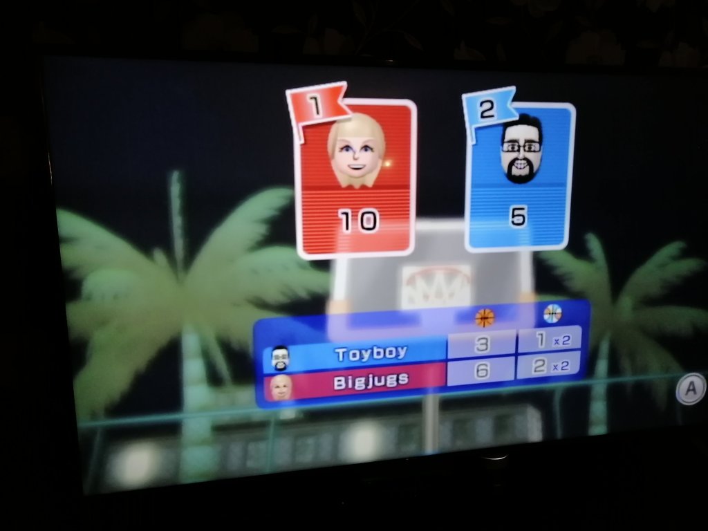 Going spare, won at the bowling alley! The Duchess smashed it at the beach frisbee so it’s best of 3Bollocks! Just had my arse handed to me at 3 pt Basketball by the ex-netballer. 2-1 to Wor Lass