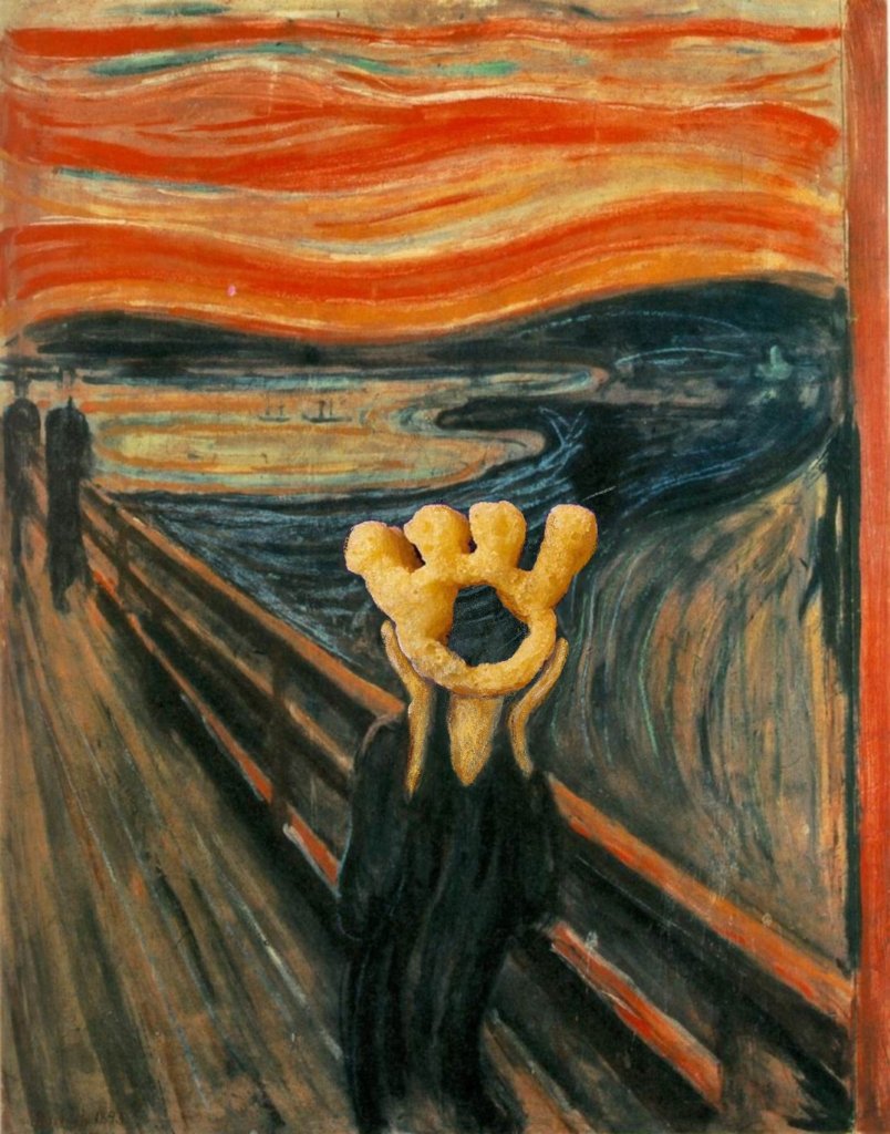 The Scream Does he taste of pickled onion or flamin hot paprika? Source: The brilliant artist and comedian Olaf Falafel’s Twitter feed Share this: Click to share on X (Opens in new window) X Click to share on Facebook (Opens in new window) Facebook Like Loading... Related Comments are closed.