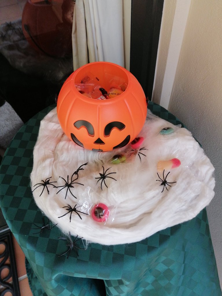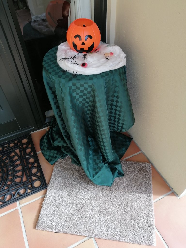 Have set up a table of treats by the front door so the kids can help themselves without knocking on the door.