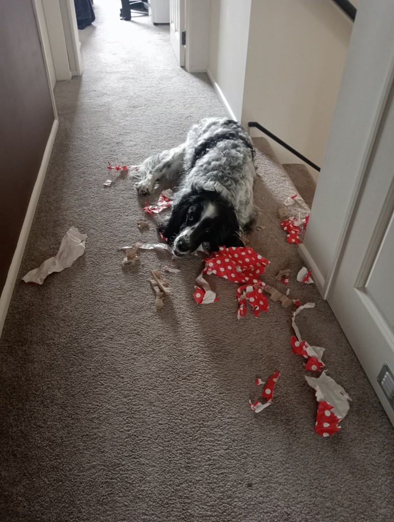 Even Fluffy got in on the fun, ripping the wrapping to shreds.