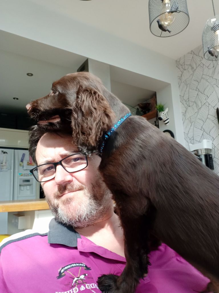 Today I enjoyed a bit of dog fussing thanks to a visit to my cousin Pamela and her feller Adrian. They have a rescued border collie bit she isn’t a fan of visitors so no cuddles there. However Pamela has recently added a second dog to the family, a lovely bundle of fun puppy called Billy.