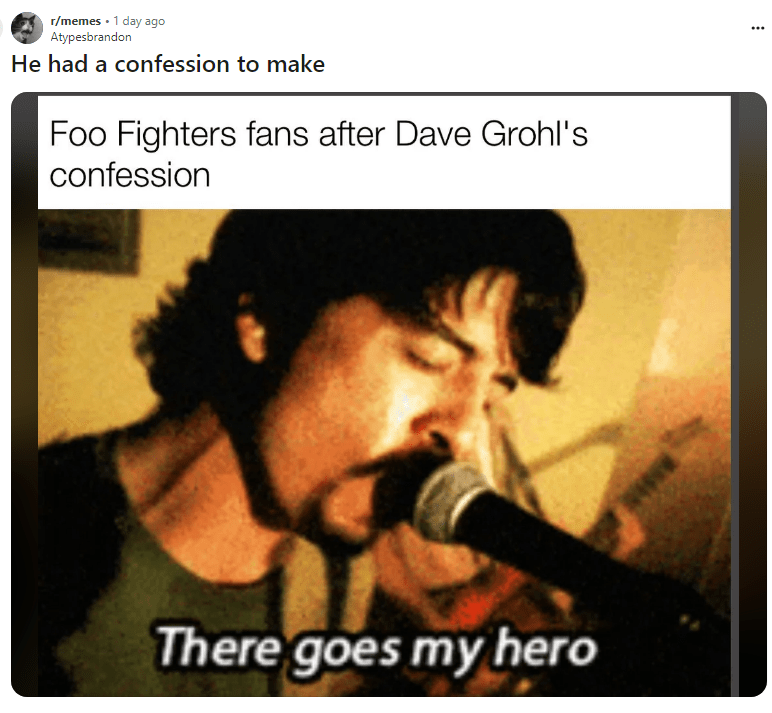 Dave Grohl’s confession to fathering a child “outside my marriage” was so memeworthy I just had to nick one and post it, though I personally couldn’t care less as it’s none of my business.