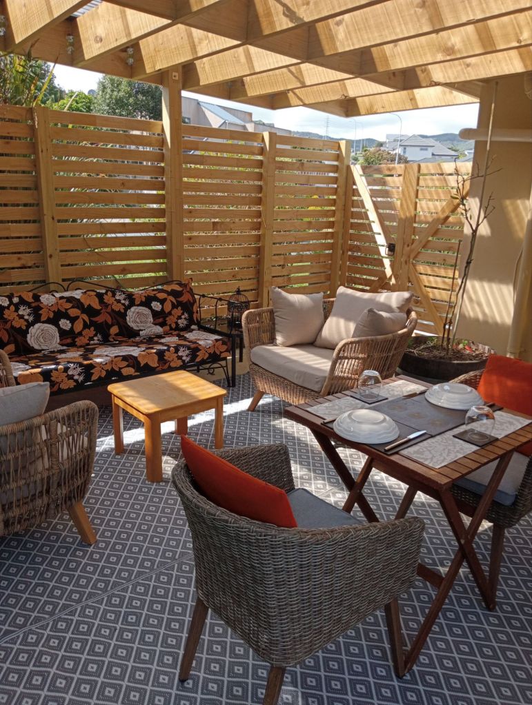 The Duchess is very happy with how the new pergola has turned out, even before we have finished furnishing it. Rugs and lighting still to come but here is a taste of where we will be spending most of the Summer (well the 30% of days it isn’t a howling gale cos Wellington)