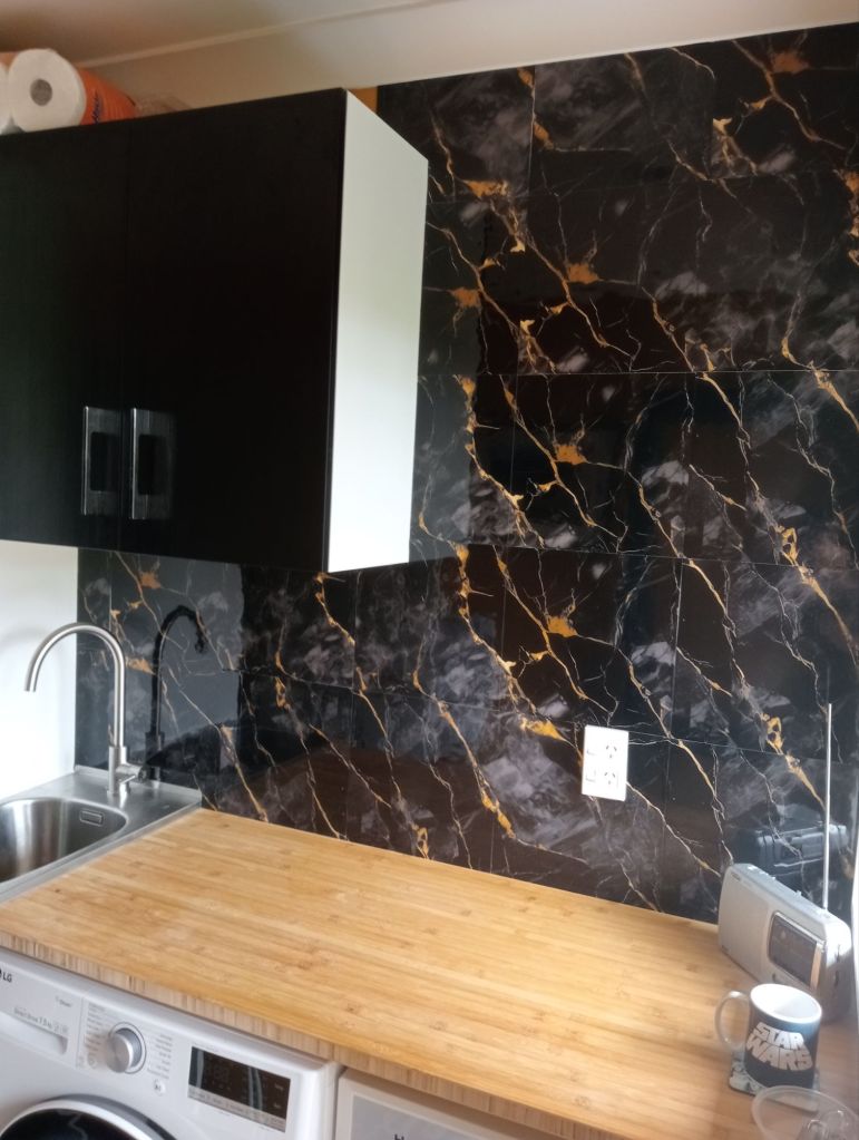 Today we replaced the faded vinyl tiles in our utility room with some fresh and slightly blingier ones. Although they don’t match up as well as they should they look pretty good.