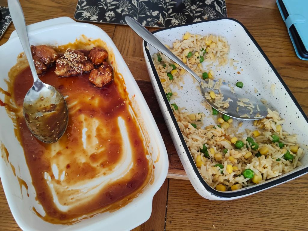 I did a Diane Sauce earlier in the week that I thought was a minor triumph and today had a go at an unsupervised Chinese meal of chicken and egg fried rice. While the chicken wasn’t as crispy as I would have liked the sauce was tasty and I enjoyed the sight of The Duchess coming back for seconds!